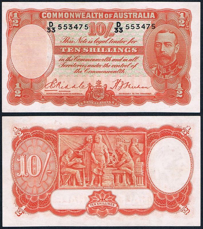 Australia, KGV, Ten Shillings, Riddle/Sheehan (R.11), 1936, D33/553475