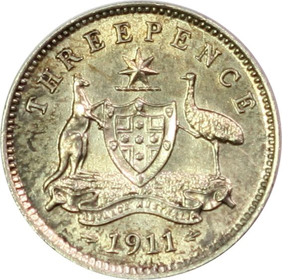 Australia, KGV, Threepence, 1911, Ch/Unc
