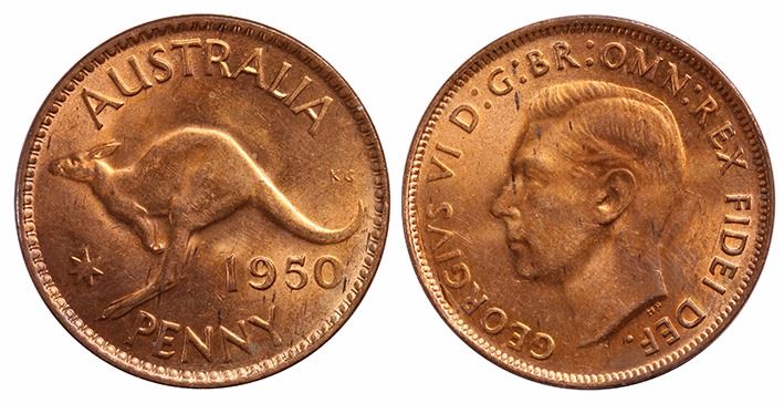 Australia, KGVI, Penny, 1950, Unc