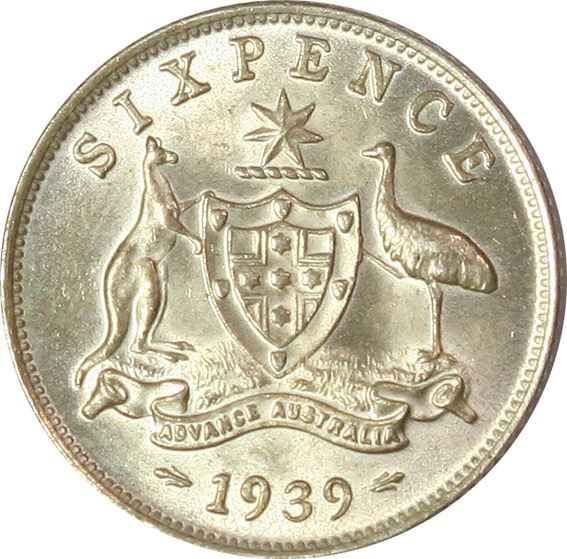 Sixpence, 1939, original mint lustre, graded as almost uncirculated