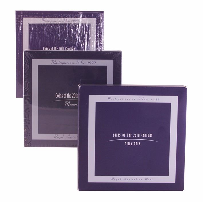 Masterpieces in Silver sets, 1998, Milestones; 1999 Memories; 2000 Monarchs, the last two unopened (3 sets)