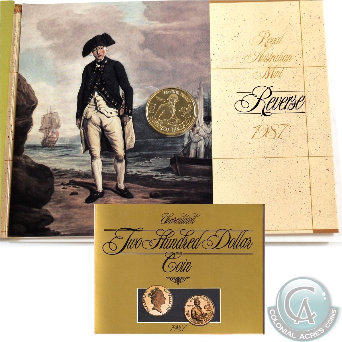 Australia Mint; 1987 $200 Captain Arthur Phillips Journey from Portsmouth to Syndey 22K Gold Coin.