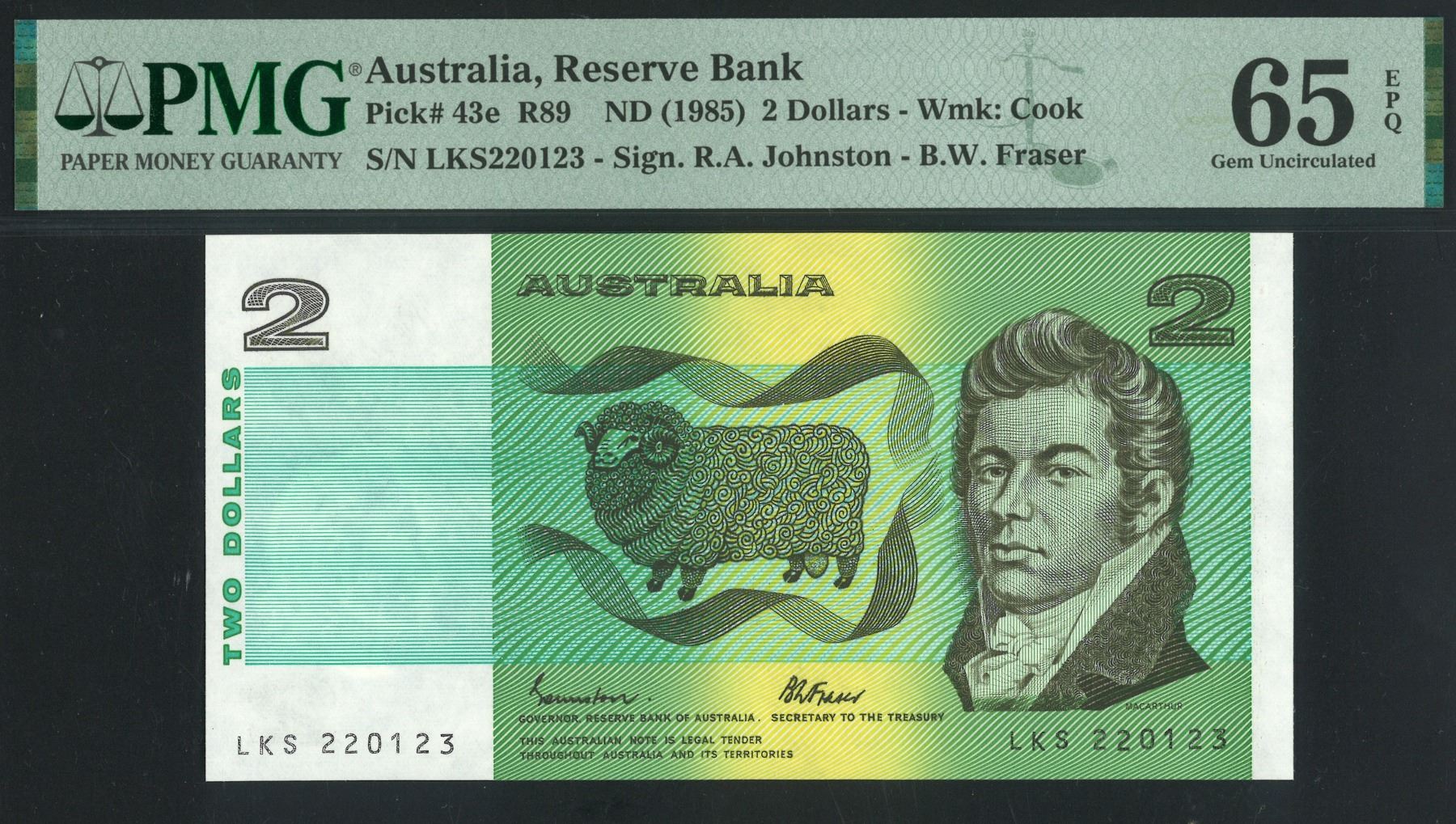 ND (1985), 澳洲, $2, 編號: LKS 220123, PMG 65EPQ。