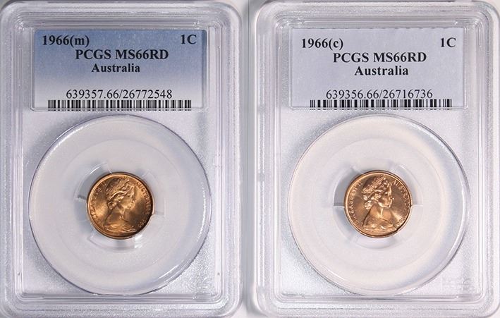 Australia, One Cent, 1966 (C), 1966 (m) Both PCGS MS66RD (2 coins)