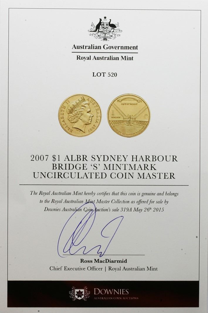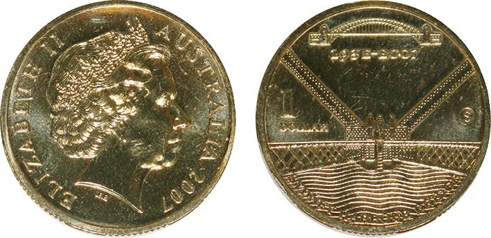 Australia, One Dollar, 2007-S Sydney Harbour Bridge Counterstamp PCGS MS67