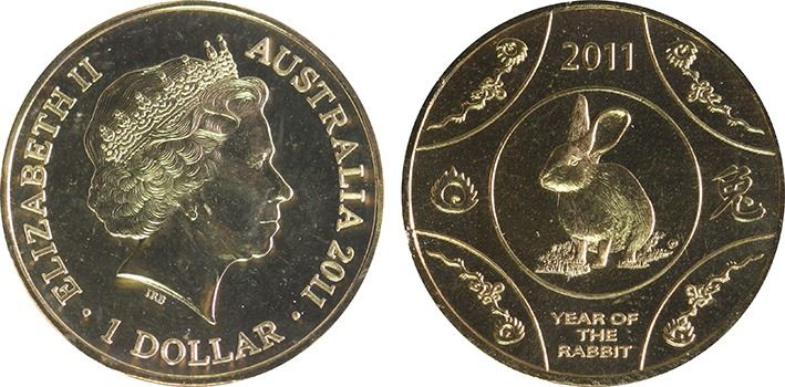 Australia, One Dollar, 2011 Year of Rabbit Al-Br PCGS MS67