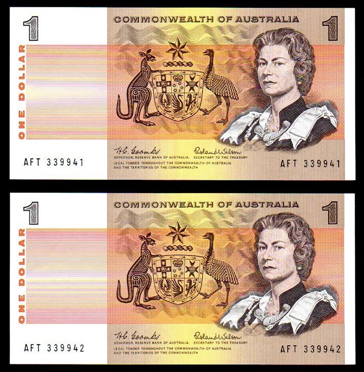 Australia, One Dollar, Coombs/Wilson, 1966, (R71), AFT 339941-42