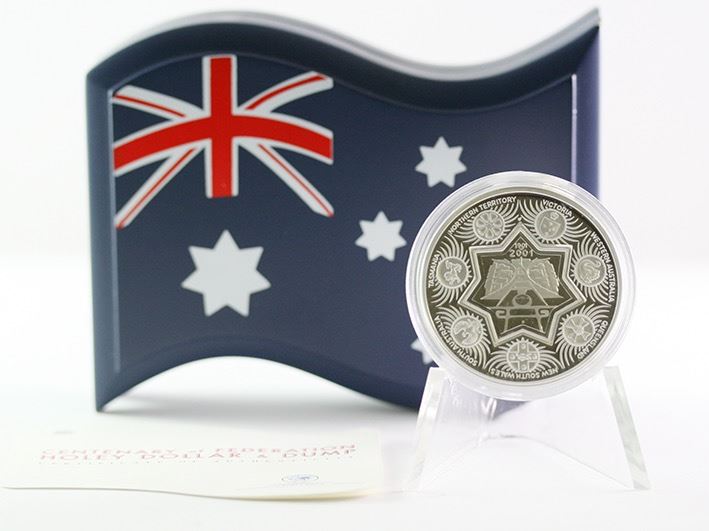 Proof One Dollar & Twenty Five Cents, Federation Holey Dollar and Dump, 1oz silver, in case as issued by Perth Mint with certificate (2 coins, 1 item), missing outer card sleeve