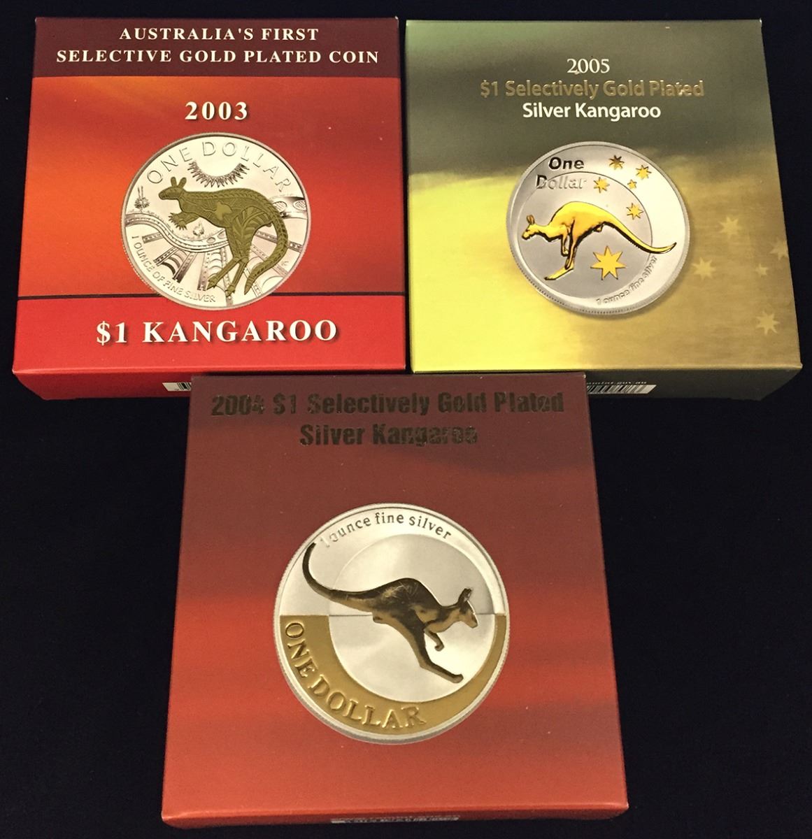 Australia, One Dollar, Elizabeth II, 2003, 2004, 2005, One Ounce Selectively Gold Plated Silver Kang