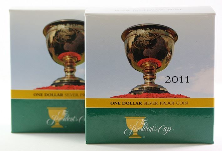 Proof One Dollar, silver, The Presidents Cup, in case as issued by RAM with certificates (2 coins)
