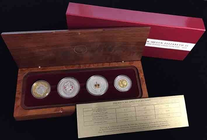 4 coin collection, 0.66oz gold and 2.39oz silver in total, as issued and high catalogue value.