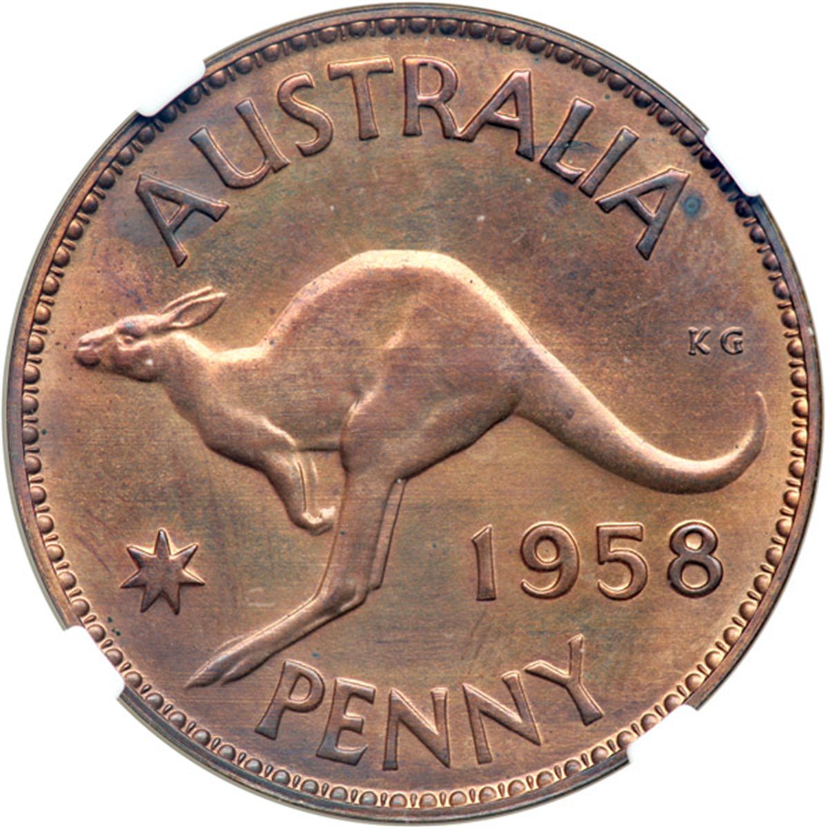Australia. Penny, 1958 (M). KM-56. Elizabeth II. Mintage 1,506. NGC graded Proof 62 Red & Brown.