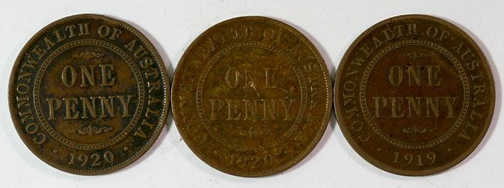 Australia, Penny, George V, 1919 and 1920 Double Dots