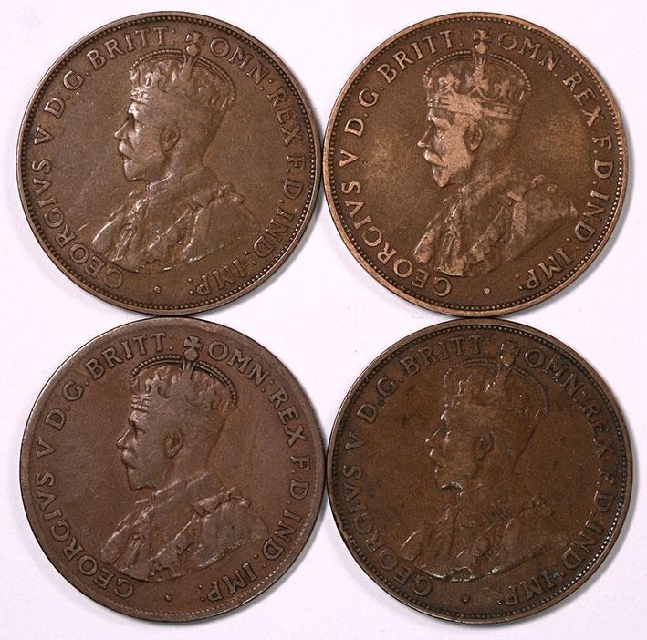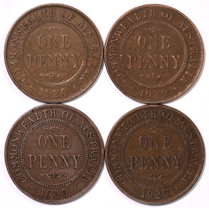 1920 plain, 1920 dot above, 1920 dot below, 1920 double dot, fine (4 coins)