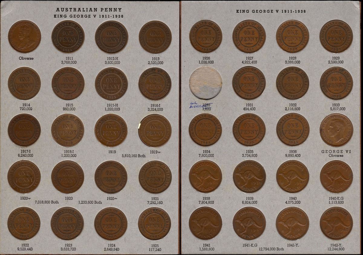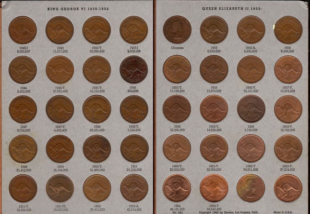 Australia, Penny set, George V to Elizabeth II, 1911 to 1964