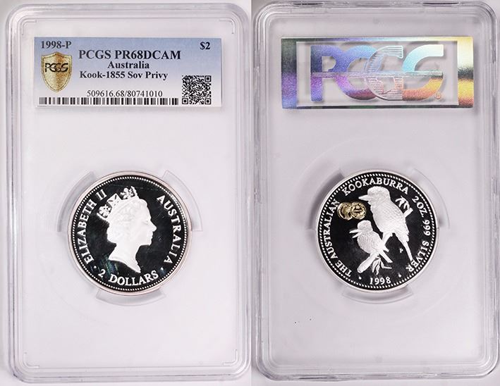 Perth Mint Proof 5oz Kookaburra, 1998, Sovereign Privy Mark PCGS PR68DCAM