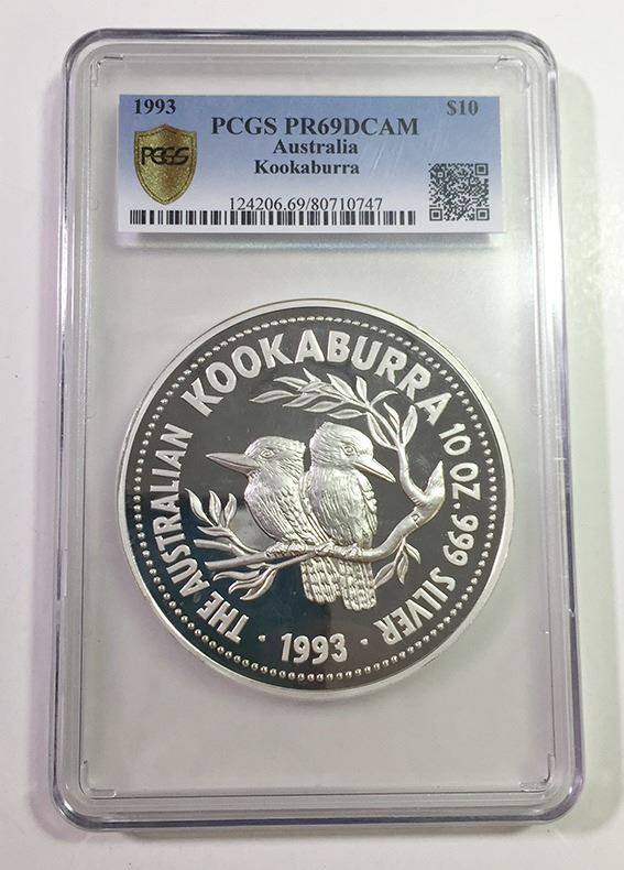 Perth Mint, Proof Silver 10oz Kookaburra, 1993 PCGS PR69 DCAM