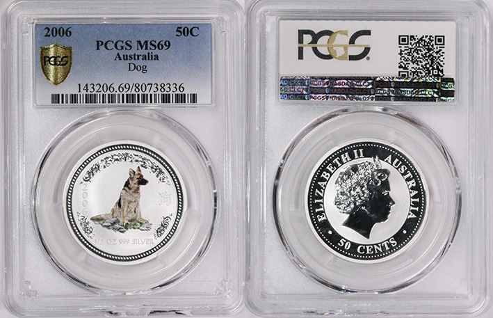 Perth Mint, silver 1/2oz Year of the Dog, Coloured issue, 2006, PCGS MS69