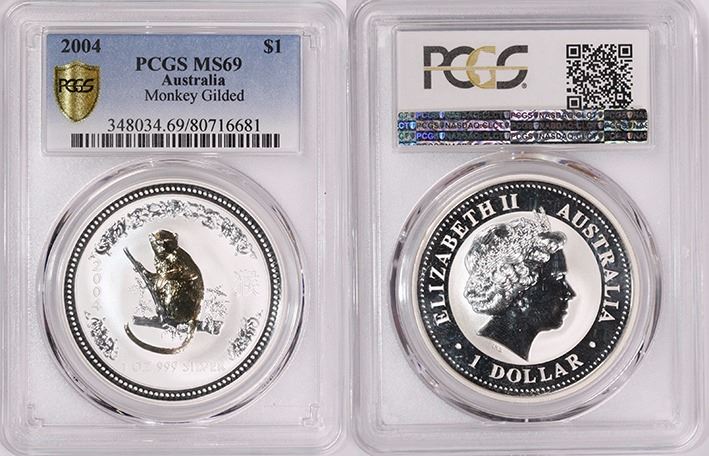 Perth Mint, silver 1oz Year of the Monkey, Gilt Highlights, 2004, PCGS MS69