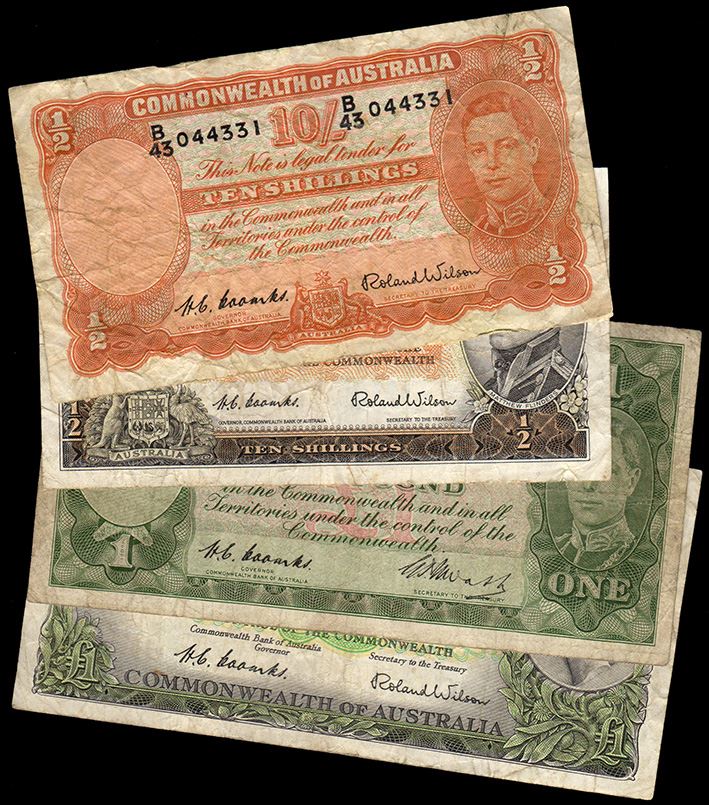 George VI, ten shillings, Coombs/Wilson (R.15), one pound, Coombs/Wilson (R.31); Elizabeth II, ten shillings, Coombs/Wilson (R.16), one pound, Coombs/Wilson (R.33), fine. (4)