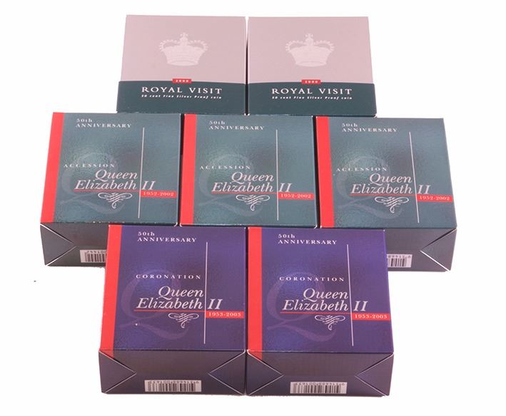 Proof Fine Silver Fifty Cents Issues, 2000 Royal Visit (2), 2002 Accession (3), 20003 Coronation (2) (7 coins)