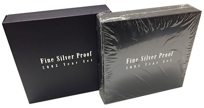 Proof Fine Silver Sets, 2003, 2004 (2 sets), the second unopened