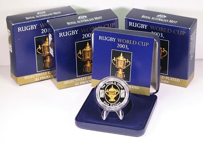 Proof Silver Selectively Gold Plated Five Dollars, Rugby World Cup (3), 2003
