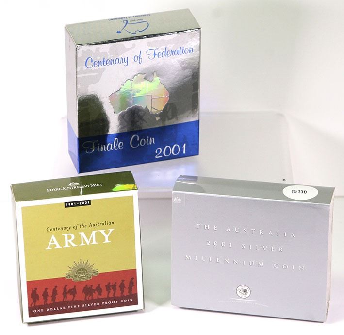 Proof Silver One Dollar, Millennium, Centenary of the Australian Army; Proof Silver Five Dollar, Centenary of Federation Finale Coin, 2001