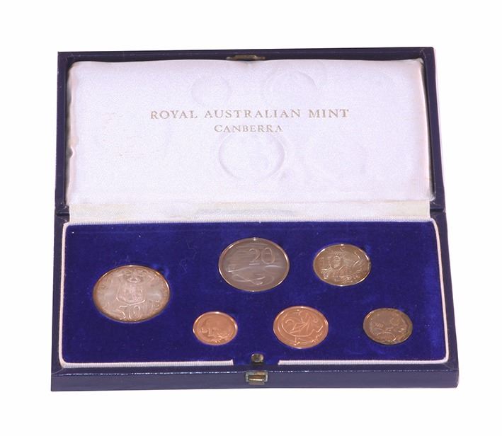 Proof set, 1966, dark blue case, copper nice and the silver with golden tone, some green spotting to edge of Ten Cents, else Choice Uncirculated