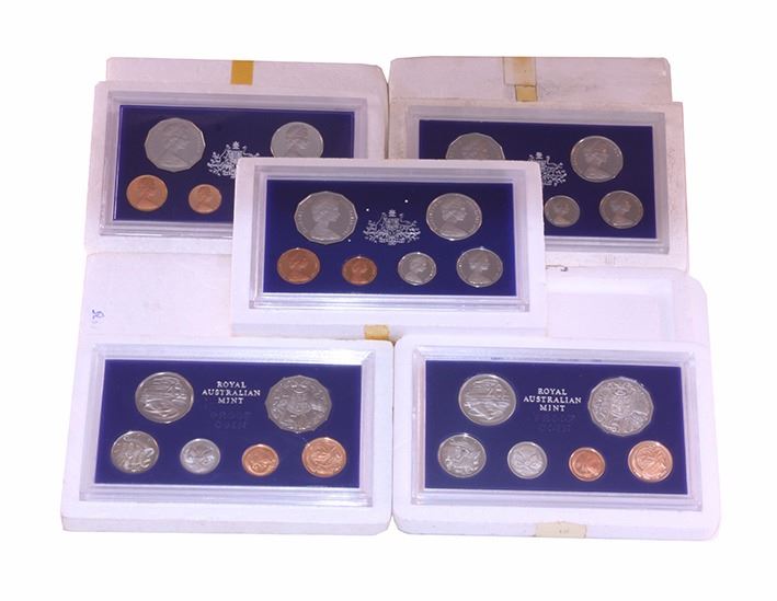 Proof Sets, 1975, 1976, 1978, 1980, 1981, fairly nice sets, a few turned coins and some frosting (5 sets)