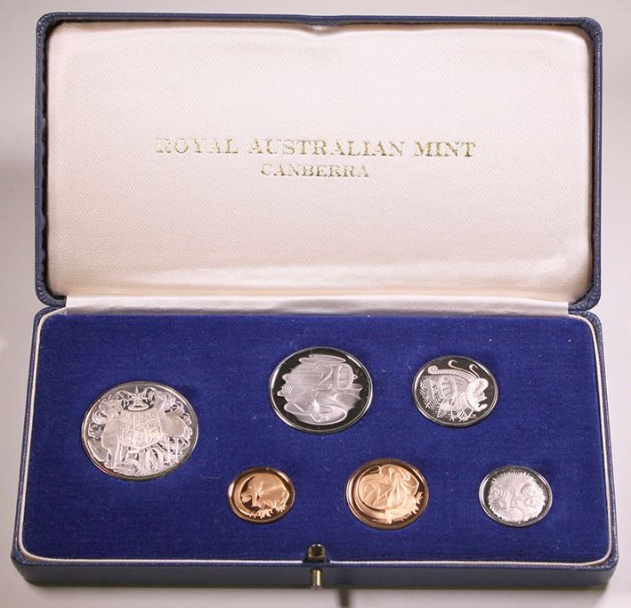Australia, proof sets, 1966, dark blue case, obverse a little foggy on Fifty Cents, else a nice clean set