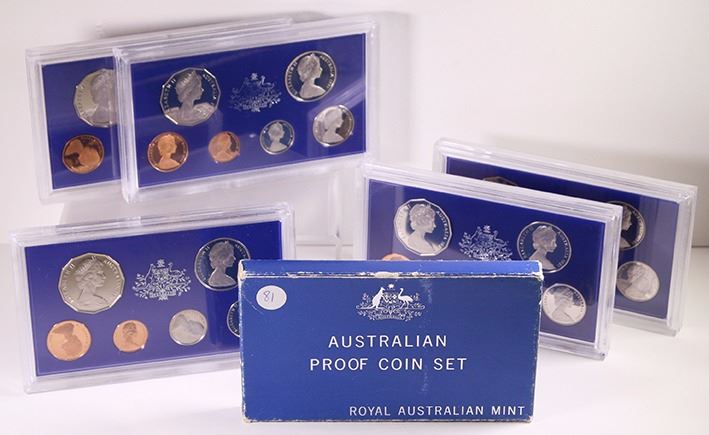 Australia, proof sets, 1981, all without foams or papers, few turned coins, one set with toned Five Cents coin (6 sets)