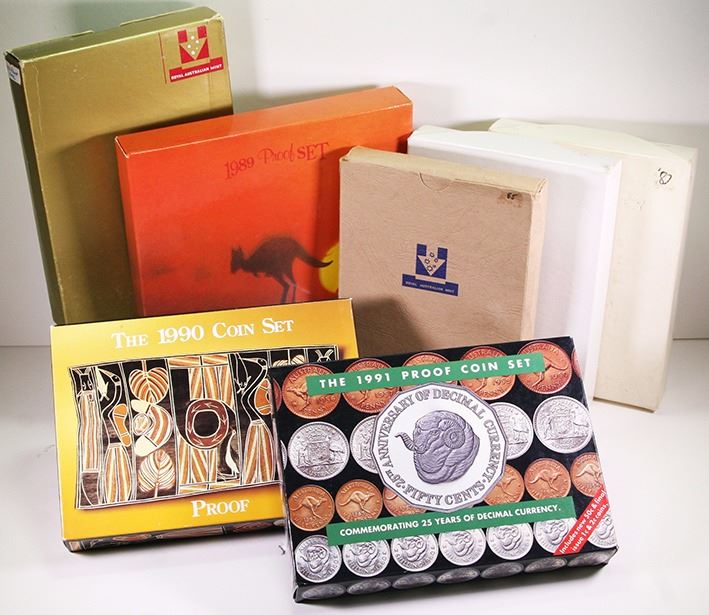 Australia, proof sets, 1985, 1986, 1987, 1988, 1989, 1990, the first box a little creased else nice clean sets (6 sets)