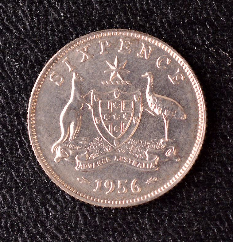 Australia, Six Pence, 1956, KM#58, Proof. Mostly brilliant, with a light tone. Small spot on obverse.