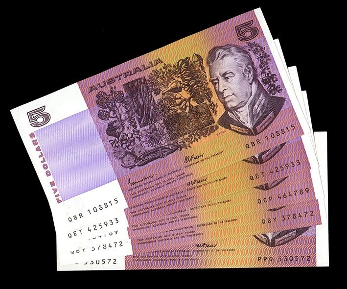 Five Dollar, 1992, Fraser/Cole, grade as good very fine - almost uncirculated (5 notes)