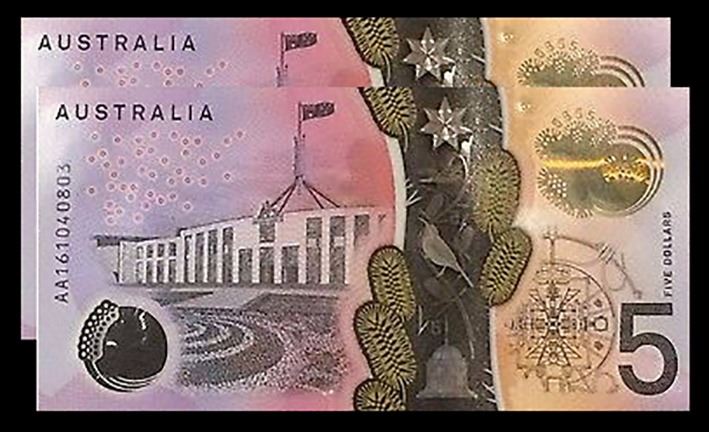 Australia, QEII, Five Dollars, 2016, Stevens/Fraser, (R.---), AA160735346-7, First Prefix