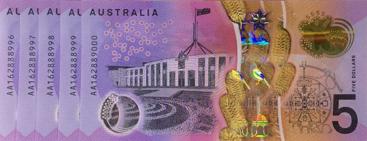 Australia, QEII, Five Dollars, 2016, Stevens/Fraser, (R.---), AA162888996-9000, First Prefix