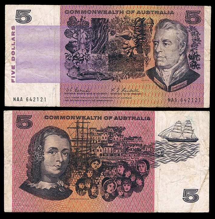 Australia, QEII, Five Dollars, Coombs/Randall, 1967 (R.202F), NAA/642121, First Prefix