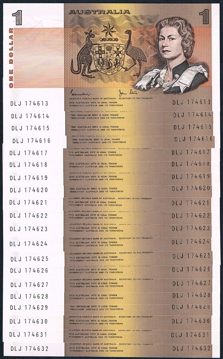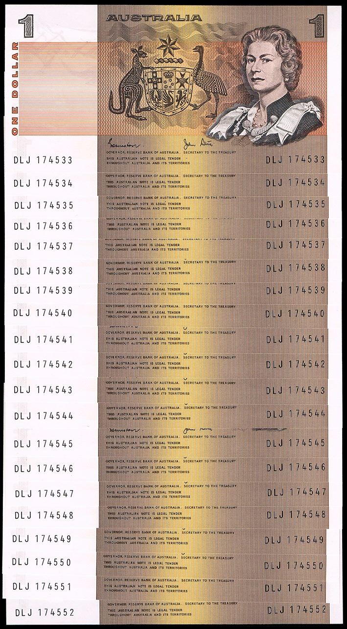 One Dollar, Johnston/Stone, 1982 (R.78), two consecutive runs of twenty notes, graded as virtually uncirculated - uncirculated (40 notes)