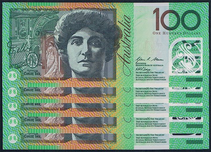 Australia, QEII, One Hundred Dollars, Stevens/Henry, 2010 (R.621bF) First Prefix, AA10, Unc