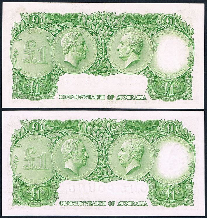 One Pound, Coombs/Wilson, C'Wealth, 1953, the first with light handling marks, graded as extremely fine, the second almost uncirculated (2 notes)