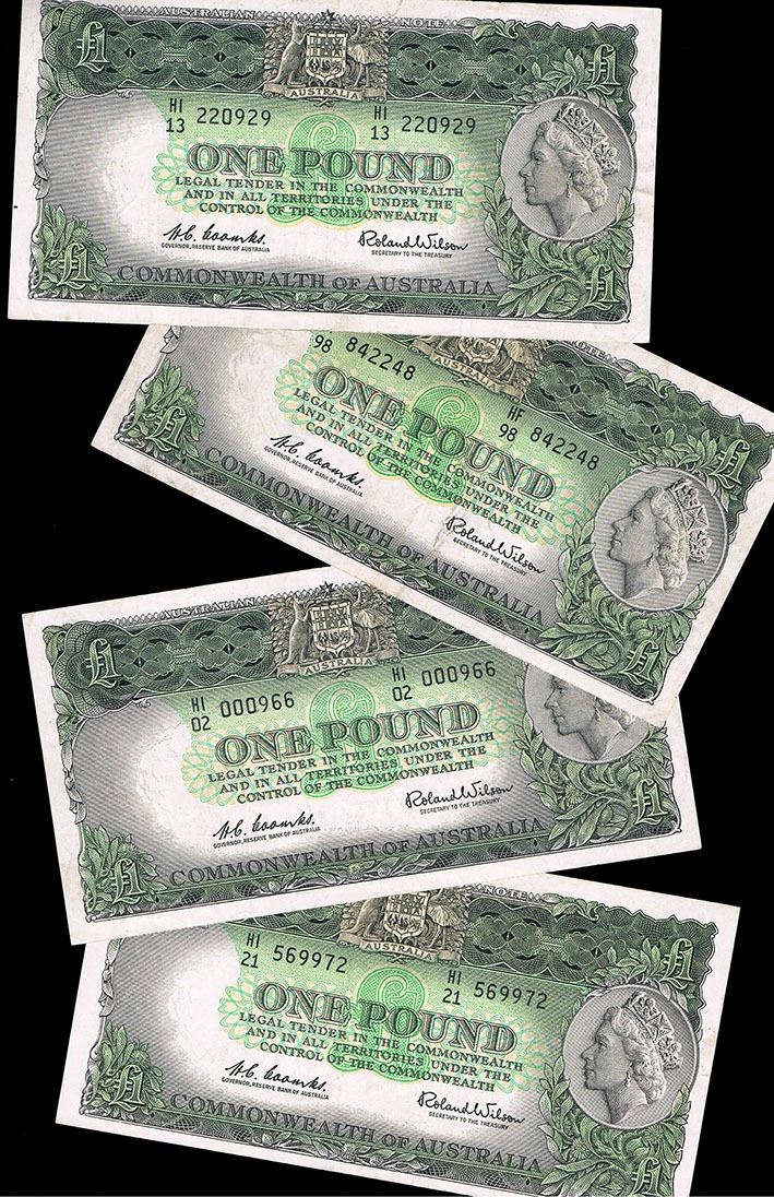 All Reserve Bank, dark green issues, nice problem free lot, graded as very fine - good very fine (4 notes)