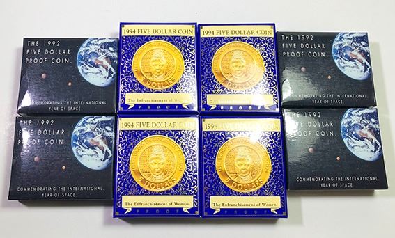 Proof Five Dollars, International Year of Space, 1992 (4), Enfranchisement of Women, 1994 (4) (8 coins)