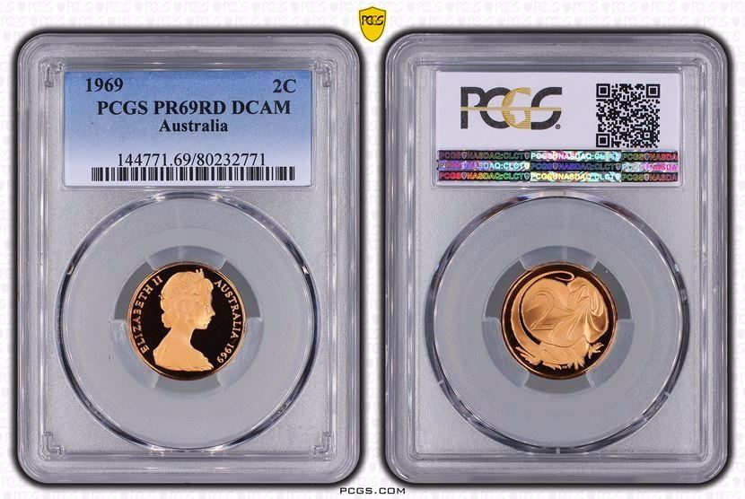 Australia, QEII, Proof Two Cents, 1969, PCGS PR69DCAM