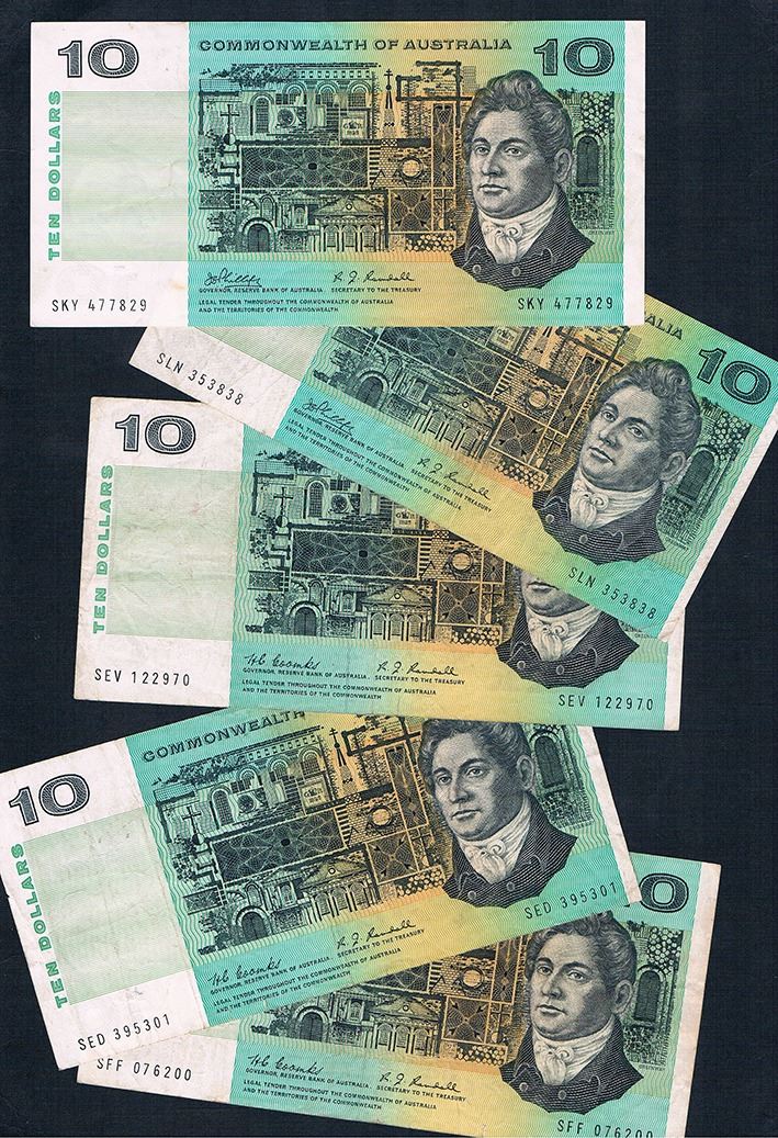 Ten Dollars, Coombs/Randall, 1967 (R.302 (2)); Phillips/Randall, 1968 (R.303 2), graded as fine or better, some of the scarcer issues (5 notes)