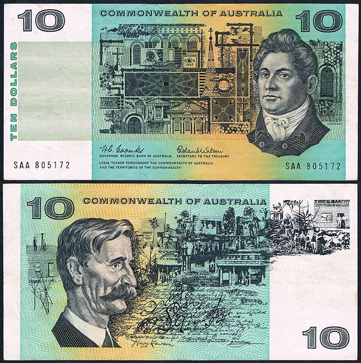 Australia, QEII, Ten Dollars, Coombs/Wilson (R.301F), 1966, First Prefix, SAA/805172