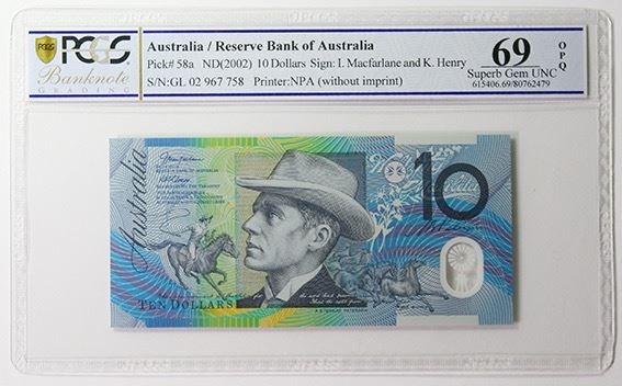 Australia, QEII, Ten Dollars, MacFarlane/Henry, 2002 (R.320aL), GL02/967758 Last Prefix, PCGS Superb