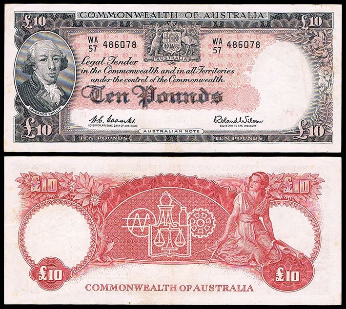 Australia, QEII, Ten Pounds, Coombs/Wilson, 1960 (R.63), VF