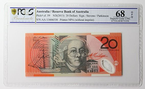 Australia, QEII, Twenty Dollars, Stevens/Parkinson, 2013 (R.422aF), AA13/606530, First Prefix, PCGS