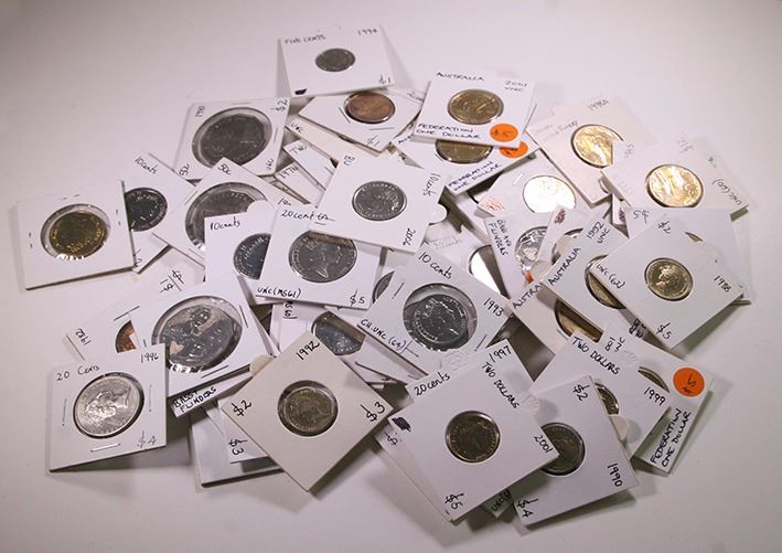 Two Cents, 1974-83 (8); Five Cents, 1988-94 (2); Ten Cents, 1969-2006 (14); Twenty Cents, 1996-2006 (8); Fifty Cents, 1981-98 (8); One Dollar, 1992-2001 (10); Two Dollars, 1988-2001 (8), mainly uncirculated or better (58 coins)